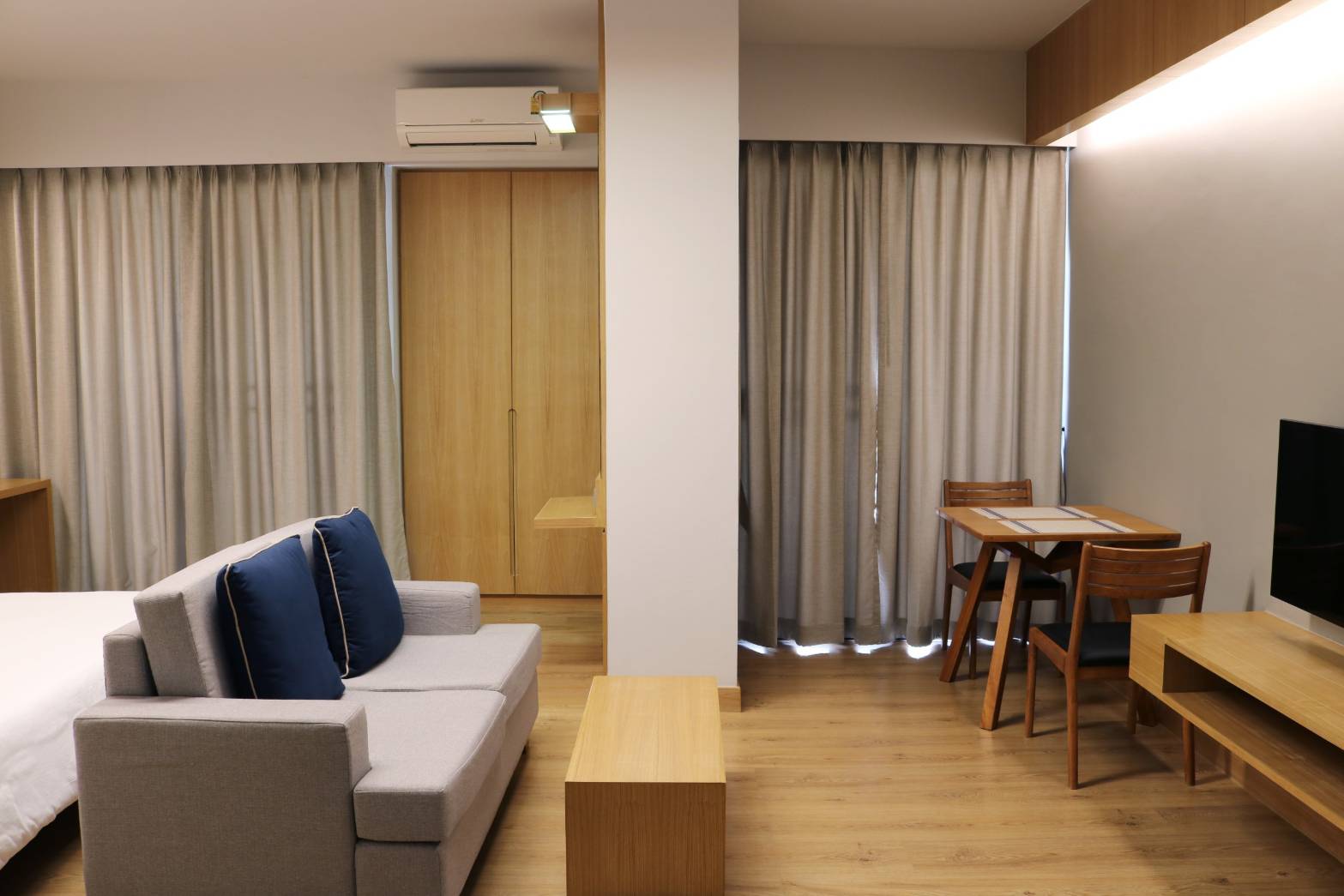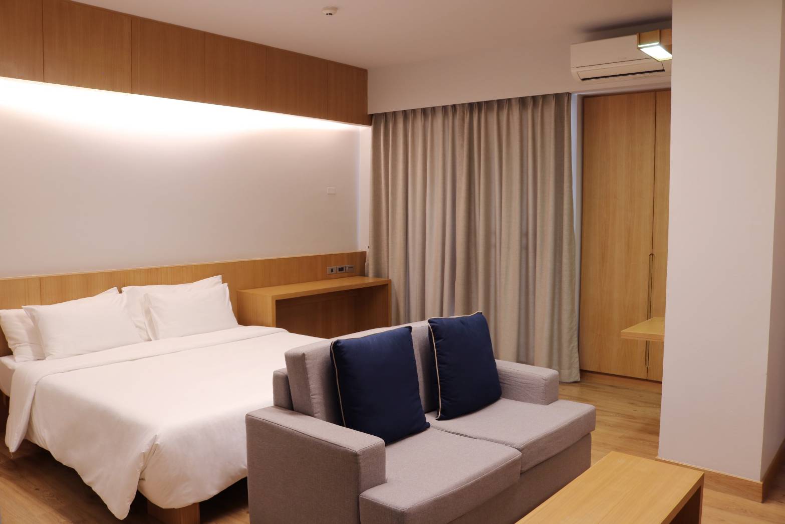 - キングサイズベッド 枕2つ(ただし、Monthlyでお泊まりの方はシーツ等の購入が必要)